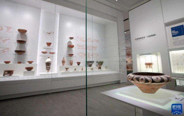 這是陜西考古博物館展出的仰韶時期彩陶甕(4月16日攝)。 新華社記者 李一博 攝