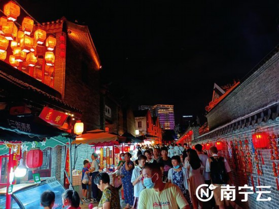 6月4日晚,記者來到南寧市興寧區(qū)“老南寧·三街兩巷”歷史文化街區(qū)看到,游客絡(luò)繹不絕。夜色中,古色古香的民國騎樓和明清建筑在光影交錯(cuò)中如夢(mèng)如幻。市民何女士說,看著掛滿屋檐的燈籠,踏入其中便可開啟一場民族風(fēng)情沉浸式夜景體驗(yàn),感受老南寧的市井百態(tài)。