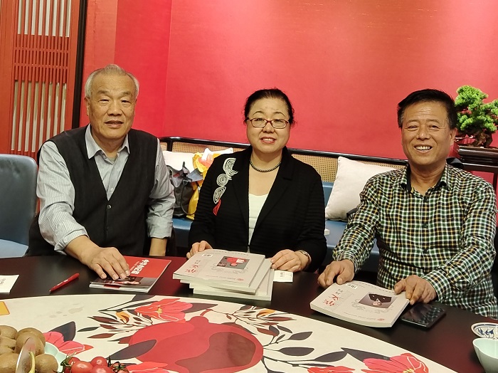 著名文藝評論家、西安音樂學院教授仵?。ㄓ遥骷?、西安武警工程大學教授楊若文(中)與李印功在一起