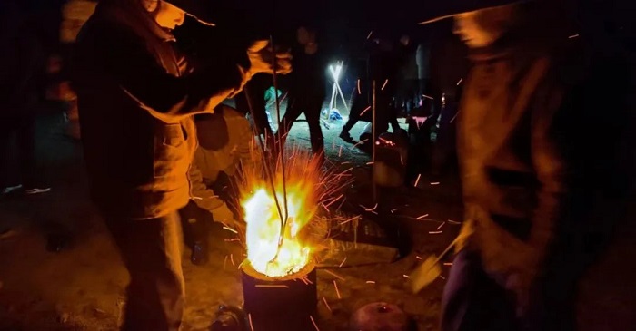 “打鐵花”是中國民間藝術(shù)中富有文化特色的非物質(zhì)文化遺產(chǎn),其技藝歷史悠久、觀賞性強。夜幕中, “打鐵花”藝人將鐵水用力舞動,奮力打向空中,濺起層層飛花,如萬點星辰在空中綻放,流光溢彩,耀眼奪目, 又如瀑布般在夜空中傾瀉而下,砸落在地面,濺起遍地銀花。