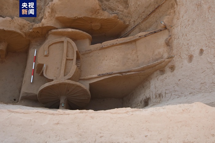 陜西清澗寨溝遺址項目負責(zé)人、陜西省考古研究院副研究館員孫戰(zhàn)偉告訴記者,這輛車兩條轅平行,置于車輿的下面,非常少見。以往的雙轅車都是在秦漢,甚至到漢代以后才開始普及,這次發(fā)現(xiàn)的雙轅車應(yīng)該是年代最早的雙轅車的實物,對于研究車的發(fā)展和車的結(jié)構(gòu)提供了非常難得珍貴的實物材料。同時,這表明陜北地區(qū)可能是車馬從歐亞草原向中原地區(qū)南傳的一個重要節(jié)點?!耙驗檐囋谝笮娌砰_始發(fā)現(xiàn),殷墟以前沒有實物車的發(fā)現(xiàn),殷墟時期及殷墟以后大量出現(xiàn)車,我們普遍地認為(車)從西亞傳到中原的節(jié)點,可能就是這個區(qū)域。”