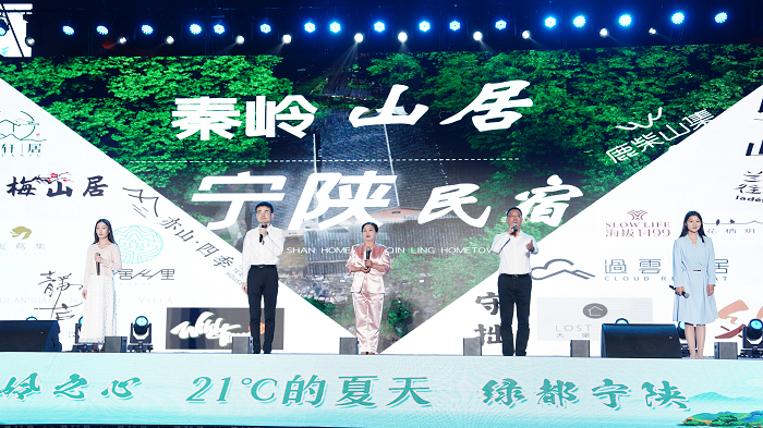 啟動儀式在歡快熱情的《歡動秦嶺》中拉開帷幕?,F(xiàn)場觀眾共同觀看了寧陜民宿宣傳片,領(lǐng)略到了寧陜山水、山珍的獨特風情。漁灣逸谷、守拙園、朝陽山居、雅軒居、遇見海棠五大民宿負責人現(xiàn)場推介,邀請西安市民到寧陜住民宿、賞美景、品美食?,F(xiàn)場發(fā)布自駕游、親水游、研學(xué)游三條精品旅游線路,寧陜夏季系列文旅活動推介和旅游優(yōu)惠政策的發(fā)布,讓現(xiàn)場觀眾心馳神往,迫不及待想開啟一段清涼之旅。