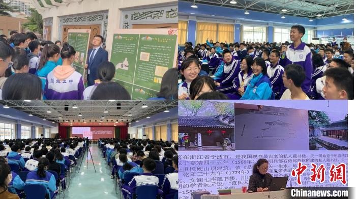 “千古巨制——《四庫(kù)全書》展”走進(jìn)學(xué)校,向莘莘學(xué)子講述《四庫(kù)全書》成書背景、裝幀形式、七閣流轉(zhuǎn)及文溯閣《四庫(kù)全書》入甘始末。(資料圖)甘肅省圖書館供圖
