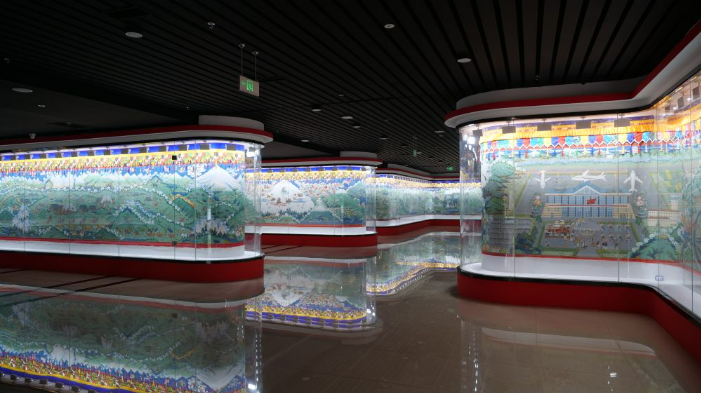 日喀則非物質(zhì)文化遺產(chǎn)展示中心里展覽的新題材唐卡(2024年5月7日攝)。新華社記者邱星翔攝