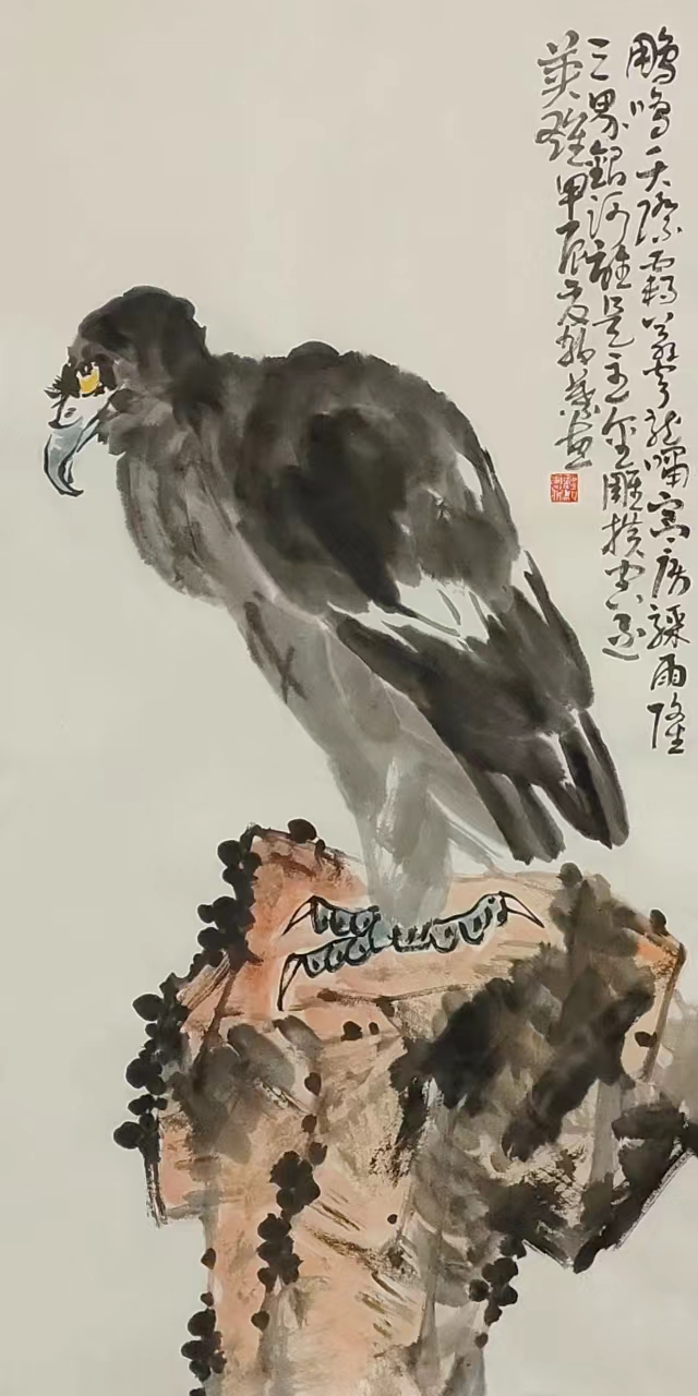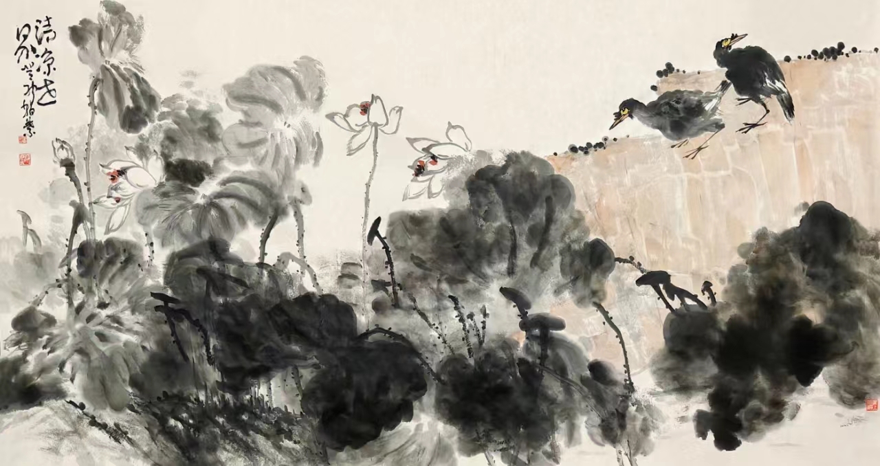 形而上者,謂之道;形而下者,謂之器。觀靜葉之畫,不技不器。外斂鋒芒,內(nèi)秀氣涵。畫荷,瑜君子氣。傳統(tǒng)中含風(fēng)骨,風(fēng)格中顯雅致。水墨變化涵大,味聚沖淡若溪,墨色線條極賦變化,荷葉層次豐富,又直浸人心。畫鳥,傲世傲視,冷逸清雅,極具八大山人之風(fēng)味。露眼看天地,清瀟觀眾生,悠然見自己。