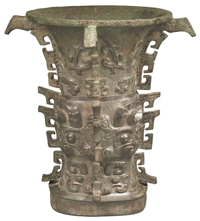 何尊。西周早期的青銅酒器,器型上圓下方,體現(xiàn)古人“天圓地方”的宇宙觀。腹底有銘文12行122字,其中的“宅茲中國”是“中國”一詞最早的文字記載。