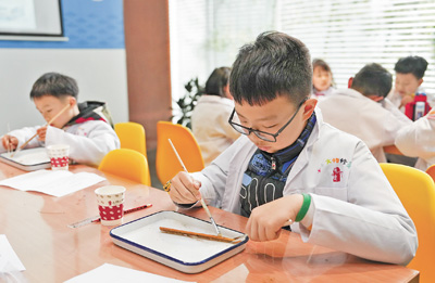 孩子們在湖南長沙簡牘博物館參與“探秘簡牘的清洗與保護”活動。