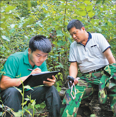 工作人員例行巡護(hù),記錄監(jiān)測(cè)數(shù)據(jù)。本報(bào)記者 張丹華攝
