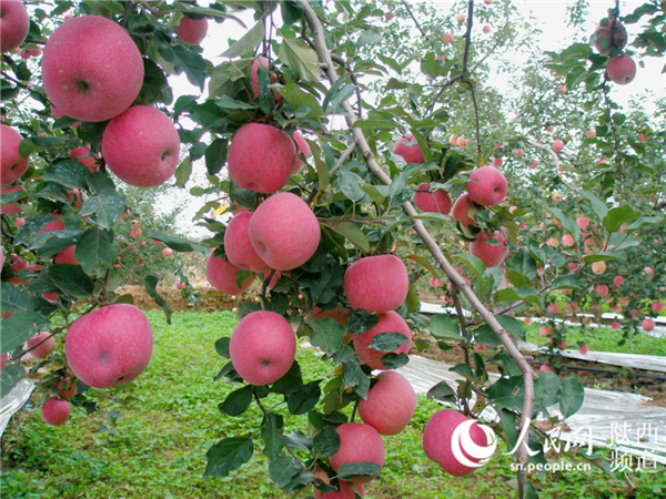 延安市洛川縣,紅彤彤的蘋果掛滿枝頭,如今的小蘋果已經(jīng)成為了延安人民的致富果。