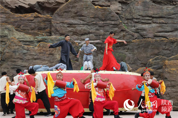 在延安市黃河壺口瀑布景區(qū),融合當(dāng)?shù)靥厣膶?shí)景演出《黃河大合唱》成為了當(dāng)?shù)卣故军S河文化的特色與亮點(diǎn)。張偉 攝