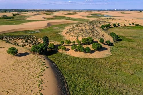 毛烏素沙地面積超過(guò)4萬(wàn)平方公里,主要分布在鄂爾多斯市烏審旗、鄂托克前旗、鄂托克旗、杭錦旗等7個(gè)旗區(qū)境內(nèi),是我國(guó)4大沙地之一。60多年來(lái),當(dāng)?shù)馗刹咳罕姴晃菲D難接力播綠,如今,沙地治理率接近70%,生態(tài)呈整體改善態(tài)勢(shì),走上了生態(tài)與發(fā)展良性互動(dòng)的生態(tài)文明之路。