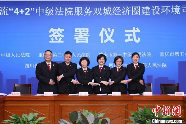 中新網重慶4月14日電 (記者 劉賢)《成渝地區(qū)長江干流“4+2”中級法院服務雙城經濟圈建設環(huán)境司法協(xié)作框架協(xié)議》14日在重慶簽署。川渝地區(qū)6家法院將建立8項跨區(qū)域合作機制,形成環(huán)境資源司法訴訟服務“同城標準”、執(zhí)法辦案“同城效應”。