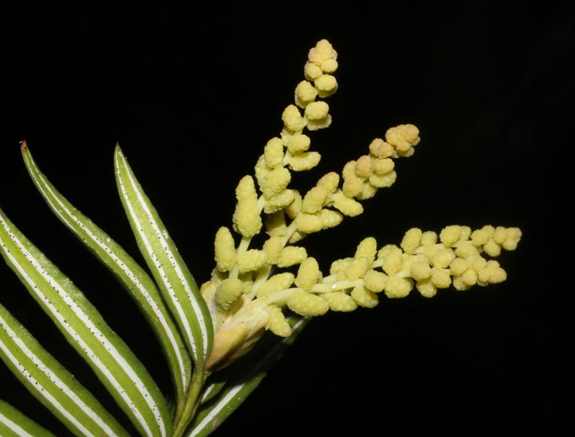 穗花杉隸屬紅豆杉科穗花杉屬,主產(chǎn)中國(guó),分布在長(zhǎng)江流域及其以南各省區(qū),極少數(shù)分布到越南北部,喜生于林下陰濕、沿溪兩旁溝谷之中或巖縫之間。穗花杉最顯著的識(shí)別特征是葉片下面中脈兩側(cè)白色氣孔帶與綠色邊帶近等寬。