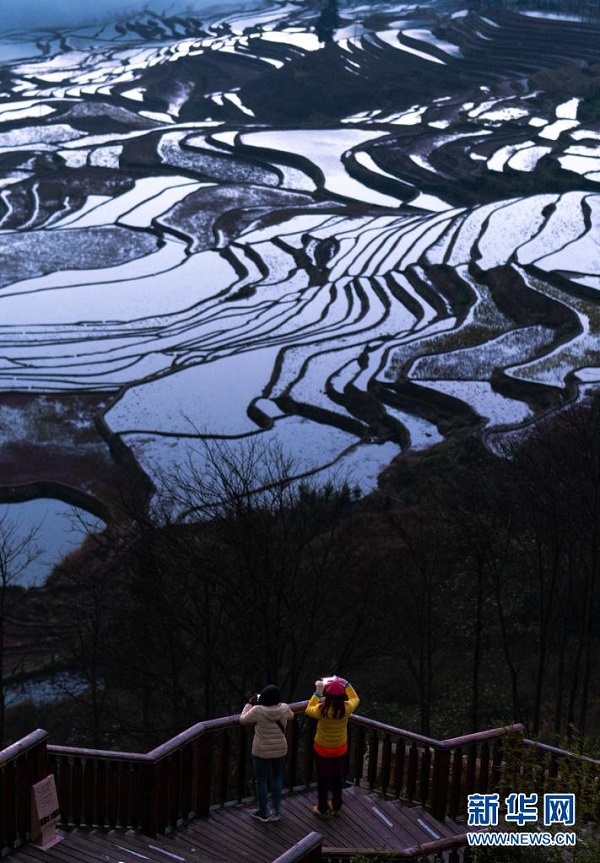 這是1月6日早晨拍攝的位于云南省哀牢山南部的哈尼梯田。新華社記者 王冠森 攝