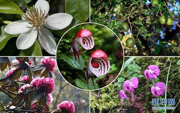 這張拼版照片顯示的是高黎貢山國(guó)家級(jí)自然保護(hù)區(qū)的部分野生植物,左上為長(zhǎng)蕊木蘭,左下為大樹杜鵑,中間為大理鎧蘭,右上為保山茜,右下為矮馬先蒿(資料照片)。新華社發(fā)(高黎貢山國(guó)家級(jí)自然保護(hù)區(qū)保山管護(hù)局供圖)