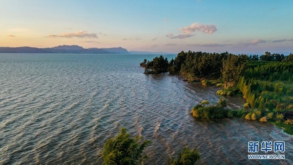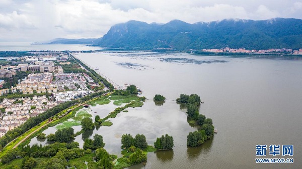 7月1日拍攝的滇池濕地一景(無(wú)人機(jī)照片)。新華社記者 胡超 攝