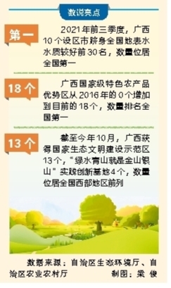 如今,在這些“國字號”生態(tài)名片的示范帶動下,八桂大地呈現(xiàn)綠水青山、江山如畫的美好圖景。