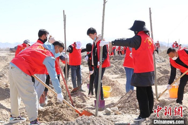 圖為植樹活動現(xiàn)場。 都蘭縣委宣傳部 供圖