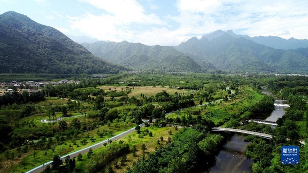 這是陜西省西安市長(zhǎng)安區(qū)秦嶺違建別墅“群賢別業(yè)”拆除后建設(shè)的秦嶺和諧森林公園(2019年7月26日攝,無(wú)人機(jī)照片)。新華社記者 劉瀟 攝