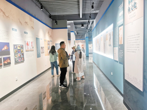 在養(yǎng)殖基地的科普教育基地里,一群研學(xué)的大學(xué)生時(shí)而埋頭記錄,時(shí)而抬頭仔細(xì)閱讀墻上的文字。