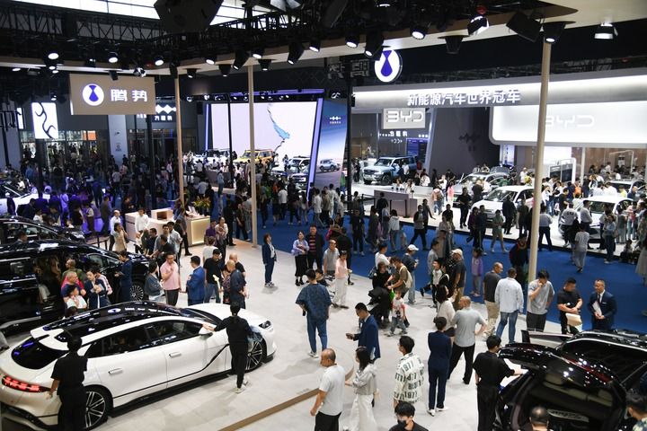 ??2024年10月1日,參觀者在2024第十九屆西安國際車展參觀新能源汽車。新華社記者 張博文 攝