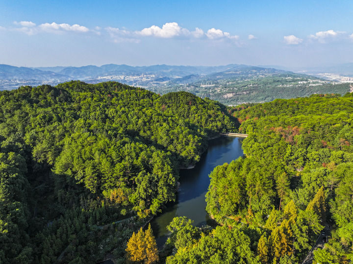 ??這是2024年10月15日在重慶市北碚區(qū)拍攝的縉云山國家級自然保護(hù)區(qū)景象(無人機(jī)照片)。新華社記者 王全超 攝
