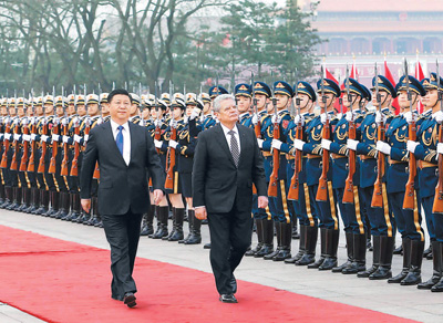 會談前,習近平在人民大會堂東門外廣場為高克舉行歡迎儀式。