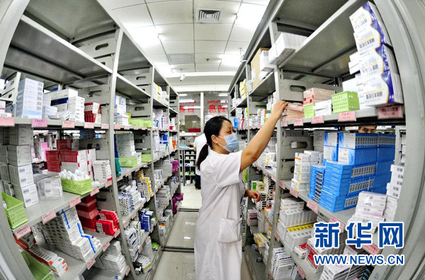河北省滄州市中心醫(yī)院工作人員在藥房?jī)?nèi)為患者取藥(2015年5月31日攝)。2015年,中國(guó)藥價(jià)改革全面實(shí)施。 新華社記者 牟宇 攝