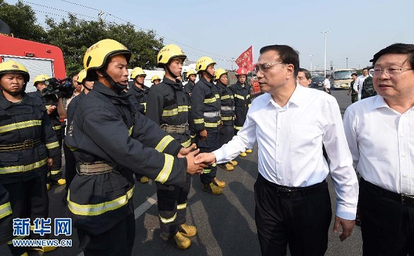李克強(qiáng)赴天津港“8·12”瑞海公司危險(xiǎn)品倉庫特別重大火災(zāi)爆炸事故現(xiàn)場