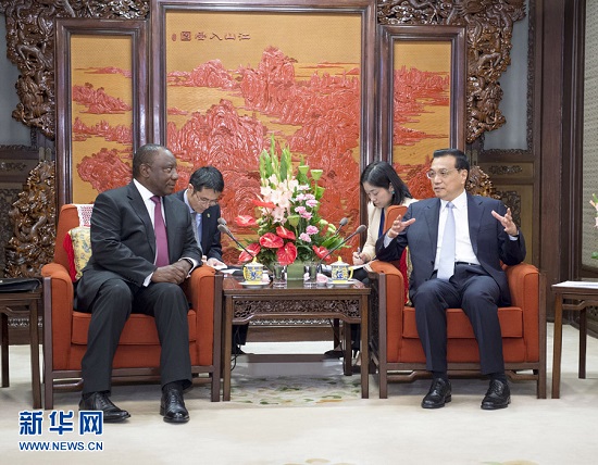 7月14日,國務(wù)院總理李克強(qiáng)在北京中南海紫光閣會(huì)見南非副總統(tǒng)拉馬福薩。新華社記者王曄攝