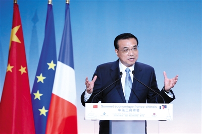 2日,李克強(qiáng)總理在法國(guó)圖盧茲的中法工商峰會(huì)上發(fā)表演講。