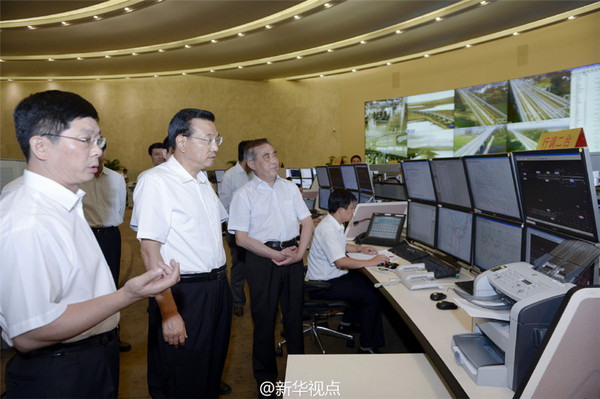 李克強(qiáng)一直牽系中國(guó)鐵路總公司成立后的轉(zhuǎn)企改制情況。22日他專(zhuān)程考察鐵路總公司,站在世界最大的國(guó)家級(jí)鐵路運(yùn)輸調(diào)度指揮中心密密麻麻的電子運(yùn)行屏幕前,他說(shuō),鐵路建設(shè)要堅(jiān)持質(zhì)量第一,運(yùn)營(yíng)中乘客至上。要在保證安全的前提下,提高效率和服務(wù)水平。