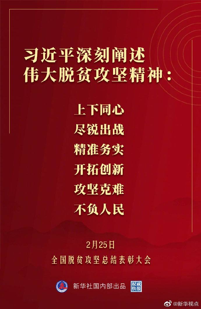 脫貧攻堅(jiān)偉大斗爭(zhēng),鍛造形成了“上下同心、盡銳出戰(zhàn)、精準(zhǔn)務(wù)實(shí)、開拓創(chuàng)新、攻堅(jiān)克難、不負(fù)人民”的脫貧攻堅(jiān)精神。脫貧攻堅(jiān)精神,是中國(guó)共產(chǎn)黨性質(zhì)宗旨、中國(guó)人民意志品質(zhì)、中華民族精神的生動(dòng)寫照,是愛國(guó)主義、集體主義、社會(huì)主義思想的集中體現(xiàn),是中國(guó)精神、中國(guó)價(jià)值、中國(guó)力量的充分彰顯,賡續(xù)傳承了偉大民族精神和時(shí)代精神。