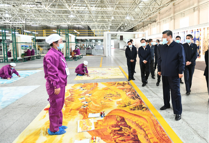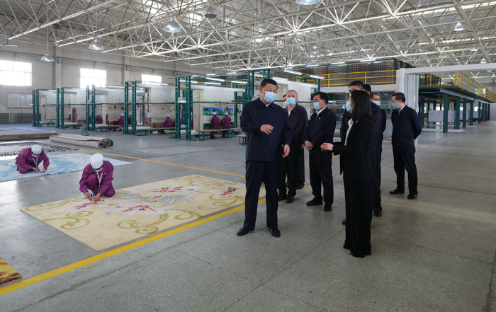 7日下午,習(xí)近平總書記來到青海圣源地毯集團(tuán)有限公司,走進(jìn)生產(chǎn)車間、設(shè)計部門察看產(chǎn)品生產(chǎn)、設(shè)計情況。習(xí)近平表示,藏毯是一種特色產(chǎn)業(yè),你們很好把傳統(tǒng)工藝和現(xiàn)代工藝結(jié)合在一起,契合了個性化、多樣化的市場需求。藏毯產(chǎn)業(yè)是符合青海實際的產(chǎn)業(yè),有扶貧致富、推進(jìn)鄉(xiāng)村振興的作用,還有促進(jìn)民族團(tuán)結(jié)的作用。習(xí)近平希望青海發(fā)展更多這樣的特色產(chǎn)業(yè),靠創(chuàng)新實現(xiàn)更好發(fā)展。