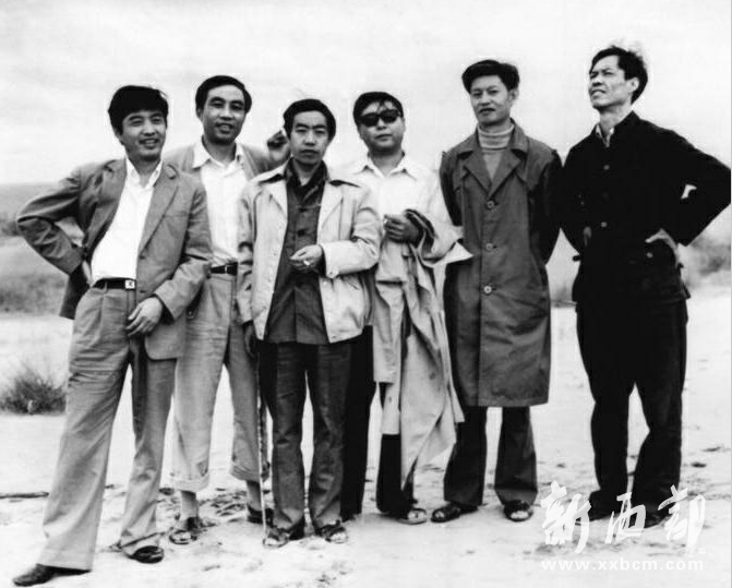 ▲1985年,賈平凹、路遙、京夫、陳忠實等人于榆林紅堿淖留影。