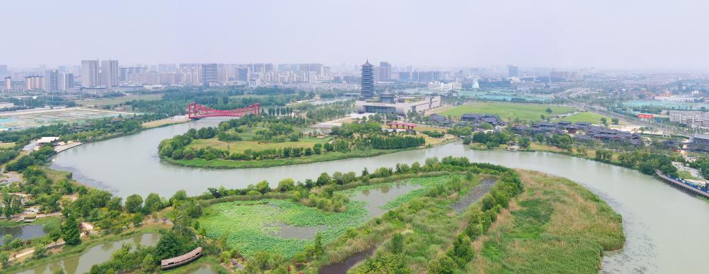 這是2022年5月25日拍攝的揚州市運河三灣景區(qū)(無人機照片)。新華社記者 李博 攝
