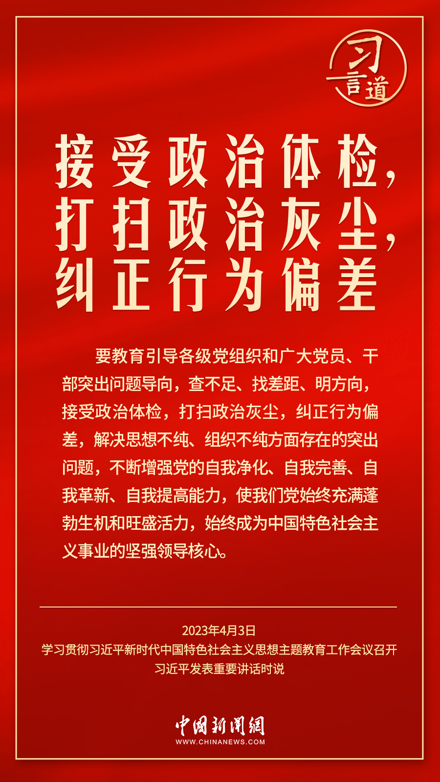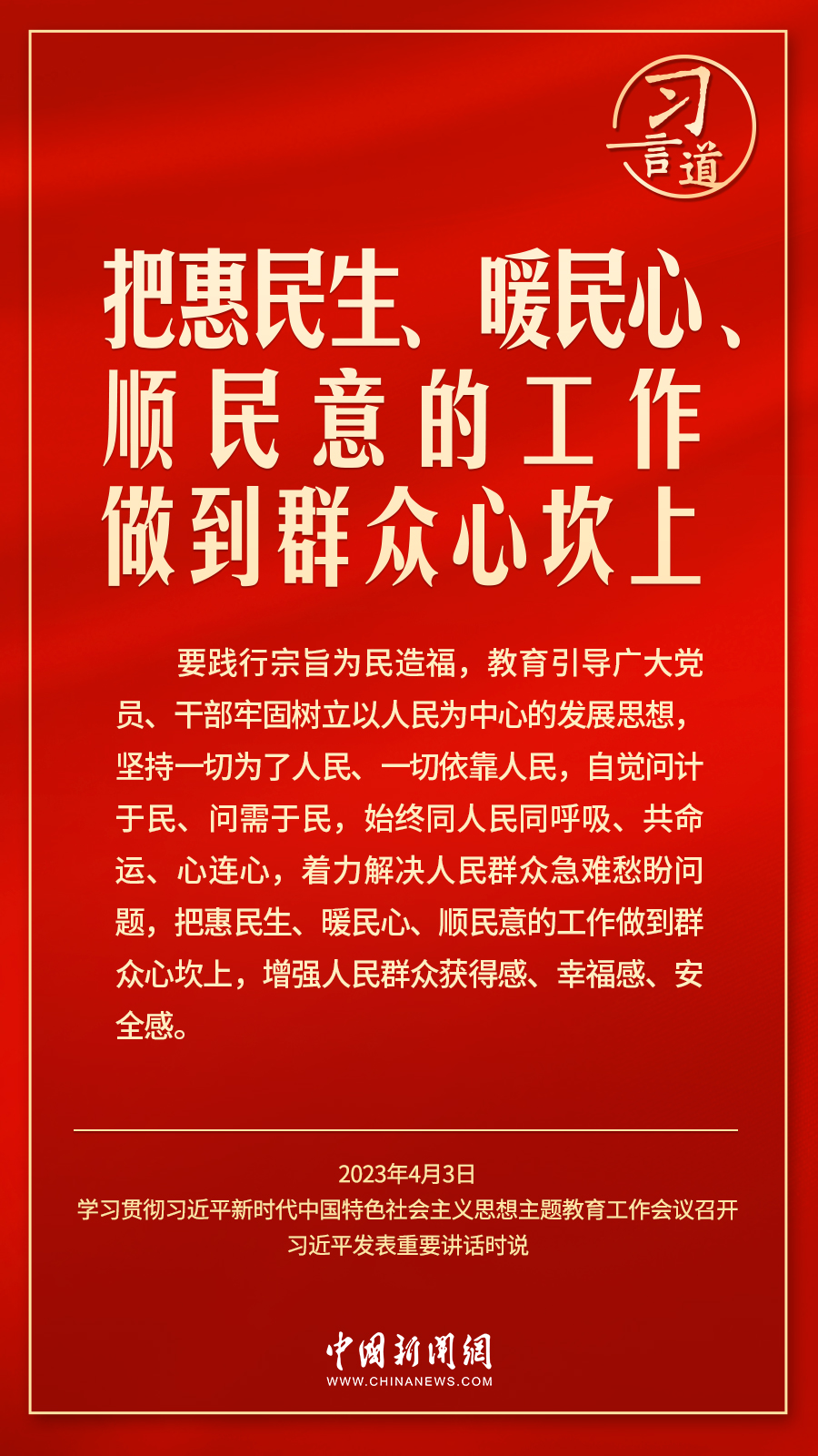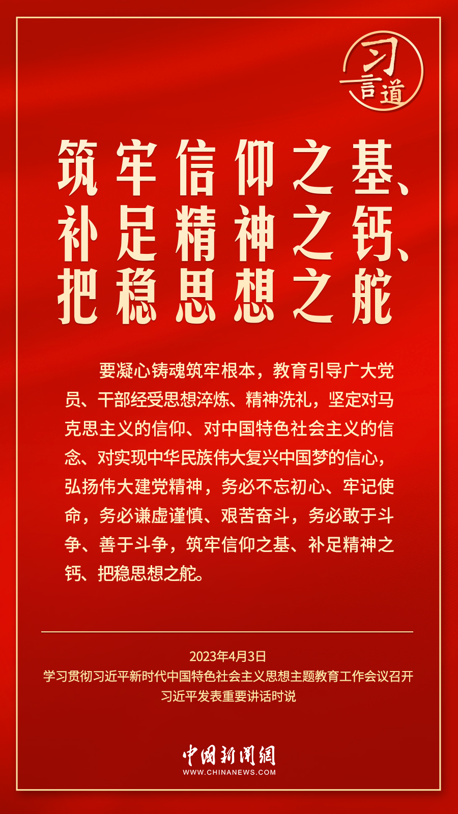 學(xué)習(xí)貫徹習(xí)近平新時(shí)代中國特色社會主義思想主題教育工作會議4月3日在北京召開。中共中央總書記、國家主席、中央軍委主席習(xí)近平出席會議并發(fā)表重要講話。他強(qiáng)調(diào)——
