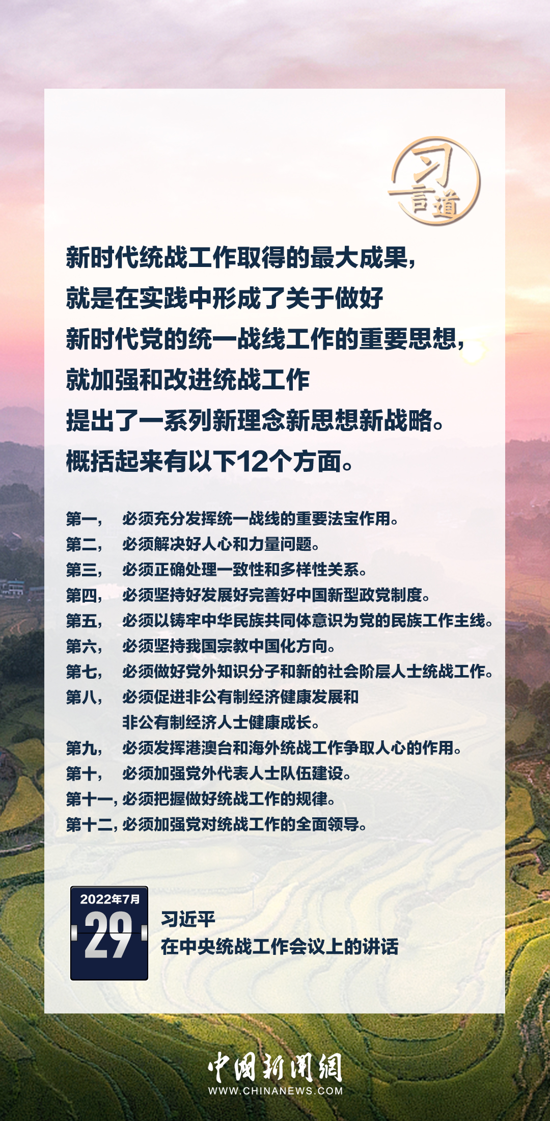 1月16日出版的《求是》雜志發(fā)表中共中央總書(shū)記、國(guó)家主席、中央軍委主席習(xí)近平的重要文章《完整、準(zhǔn)確、全面貫徹落實(shí)關(guān)于做好新時(shí)代黨的統(tǒng)一戰(zhàn)線工作的重要思想》。
