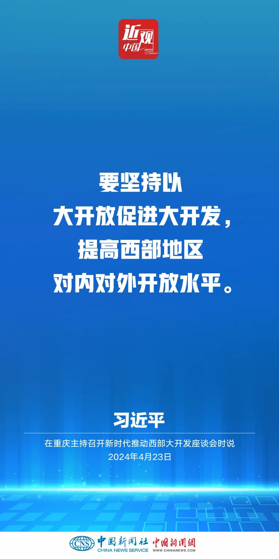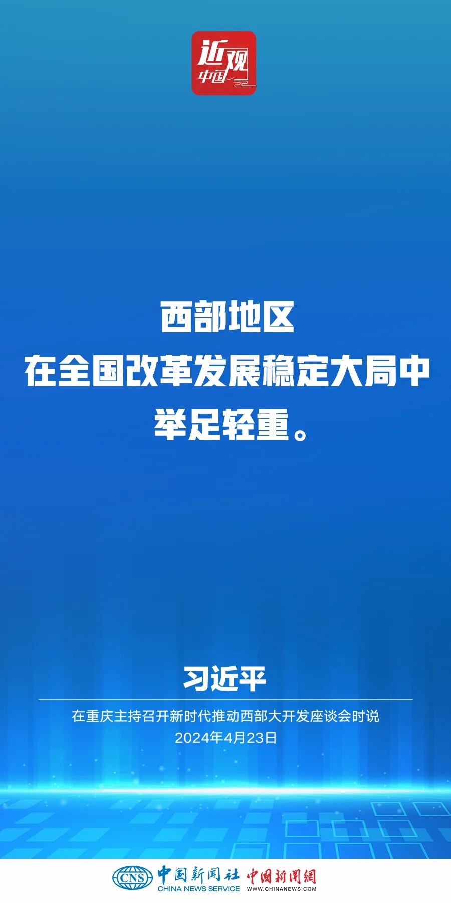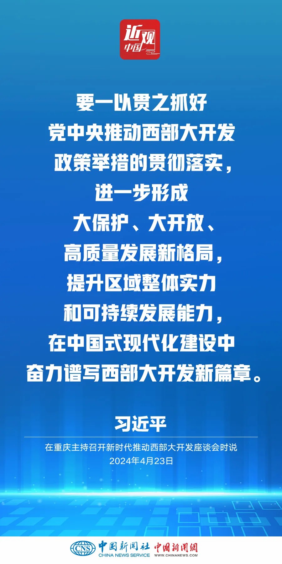 中共中央總書記、國家主席、中央軍委主席習近平4月23日下午在重慶主持召開新時代推動西部大開發(fā)座談會并發(fā)表重要講話。他強調——