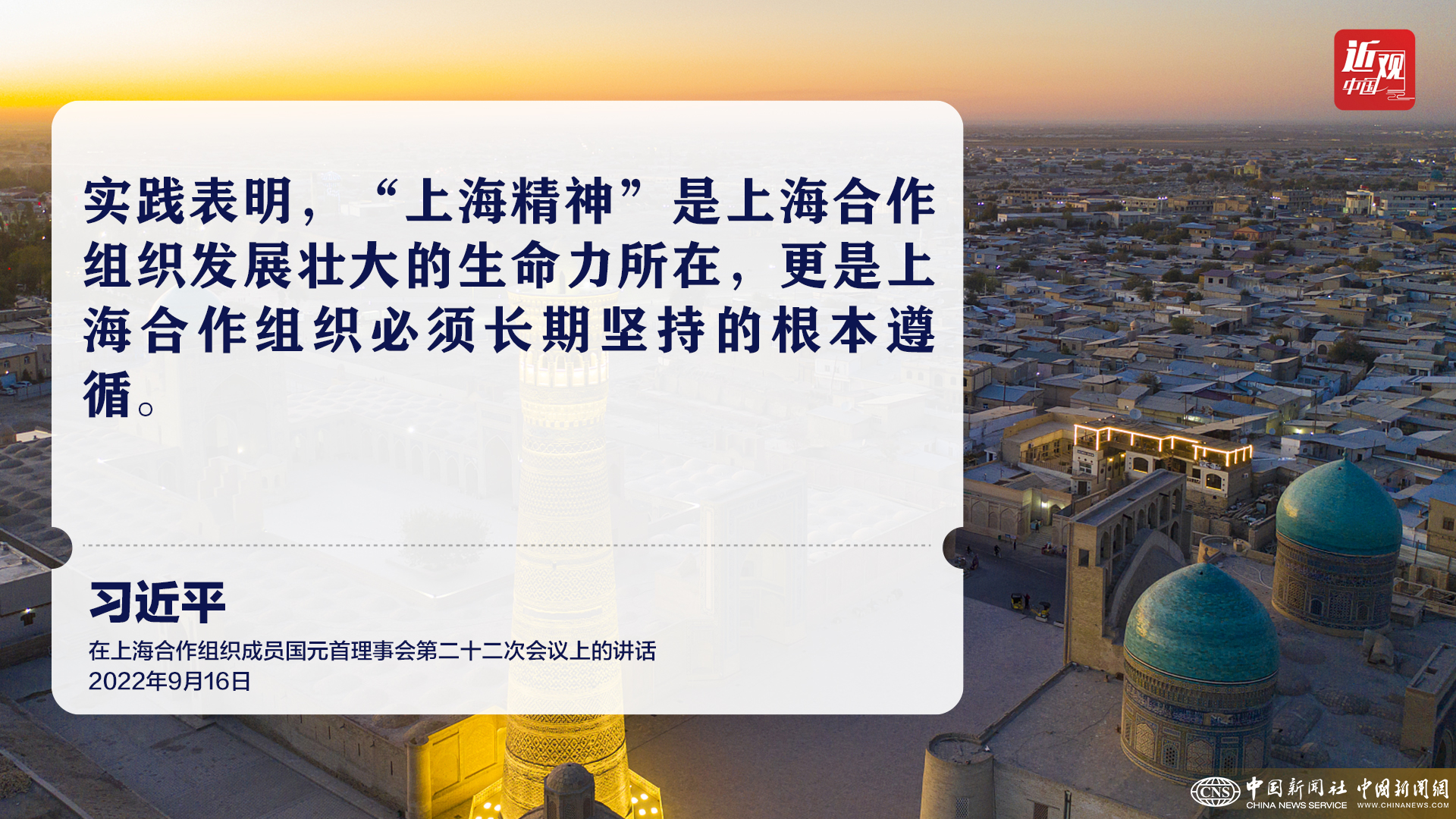 2022年9月16日,上海合作組織成員國元首理事會(huì)第二十二次會(huì)議在烏茲別克斯坦撒馬爾罕舉行。中國國家主席習(xí)近平出席會(huì)議并發(fā)表題為《把握時(shí)代潮流 加強(qiáng)團(tuán)結(jié)合作 共創(chuàng)美好未來》的重要講話。習(xí)近平指出,實(shí)踐表明,“上海精神”是上海合作組織發(fā)展壯大的生命力所在,更是上海合作組織必須長期堅(jiān)持的根本遵循。過去我們踐行“上海精神”取得巨大成功,未來我們還要秉持“上海精神”一路前行。