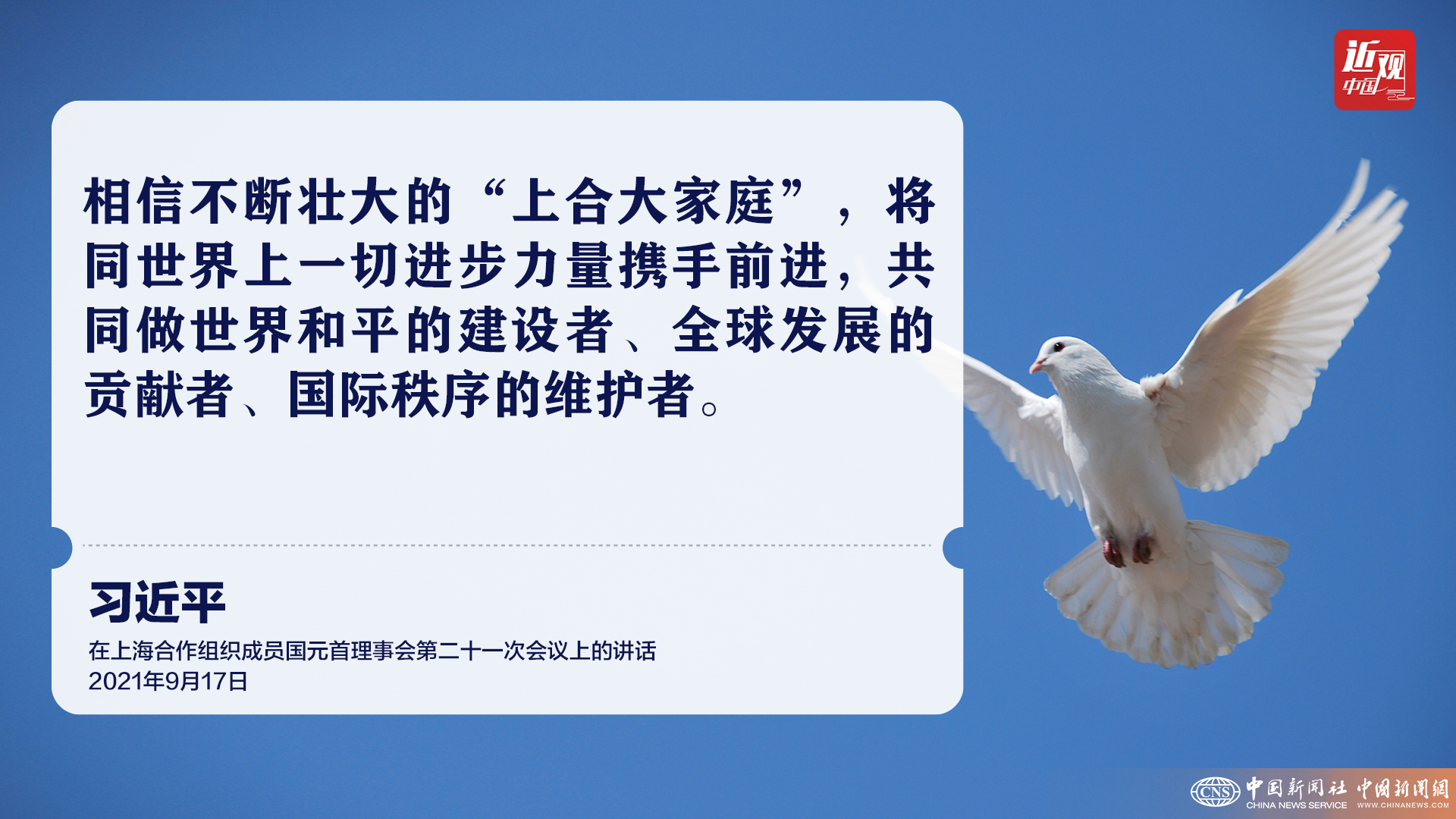 2021年9月17日下午,中國國家主席習(xí)近平在北京以視頻方式出席上海合作組織成員國元首理事會(huì)第二十一次會(huì)議并發(fā)表題為《不忘初心 砥礪前行 開啟上海合作組織發(fā)展新征程》的重要講話。習(xí)近平指出,相信不斷壯大的“上合大家庭”,將同世界上一切進(jìn)步力量攜手前進(jìn),共同做世界和平的建設(shè)者、全球發(fā)展的貢獻(xiàn)者、國際秩序的維護(hù)者。習(xí)近平說,讓我們高舉“上海精神”旗幟,不忘初心、砥礪前行,沿著構(gòu)建人類命運(yùn)共同體的人間正道,開啟上海合作組織發(fā)展新征程!