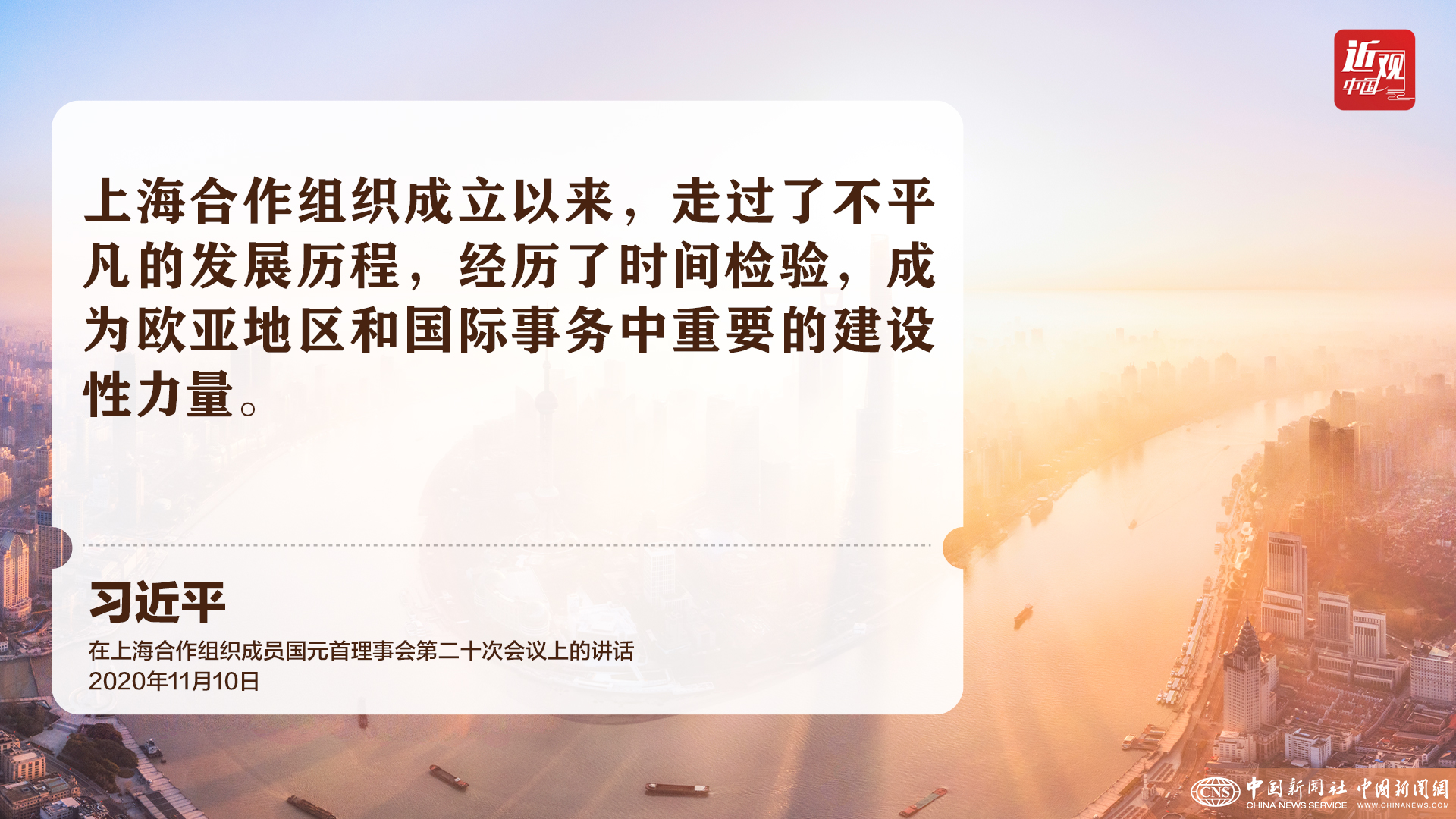 2020年11月10日晚,中國國家主席習(xí)近平在北京以視頻方式出席上海合作組織成員國元首理事會(huì)第二十次會(huì)議并發(fā)表題為《弘揚(yáng)“上海精神” 深化團(tuán)結(jié)協(xié)作 構(gòu)建更加緊密的命運(yùn)共同體》的重要講話。習(xí)近平強(qiáng)調(diào),上海合作組織成立以來,走過了不平凡的發(fā)展歷程,經(jīng)歷了時(shí)間檢驗(yàn),成為歐亞地區(qū)和國際事務(wù)中重要的建設(shè)性力量。成員國遵循“上海精神”,加強(qiáng)政治、經(jīng)濟(jì)、安全、人文等領(lǐng)域合作,樹立了相互尊重、公平正義、合作共贏的新型國際關(guān)系典范。