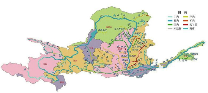 2018年黃河流域水質(zhì)分布示意圖(來源《2018中國生態(tài)環(huán)境狀況公報》)