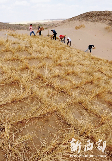 ▲草方格是治理沙化土地、涵養(yǎng)水源的有效辦法