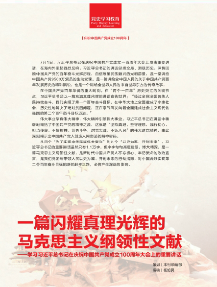 7月1日,習近平總書記在慶祝中國共產黨成立一百周年大會上發(fā)表重要講話,在海內外引起強烈反響。習近平總書記的講話總攬全局、洞觀歷史,深情回顧中國共產黨的百年奮斗光輝歷程,自信展望民族復興的光明前景,是一堂講給中國共產黨9500萬黨員的生動黨課,是一篇講給全中國人民的關于中國共產黨百年發(fā)展歷史的精彩演說,也是一個講給全世界人民的來自世界東方的傳奇故事。