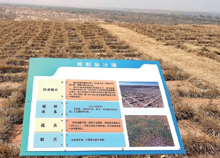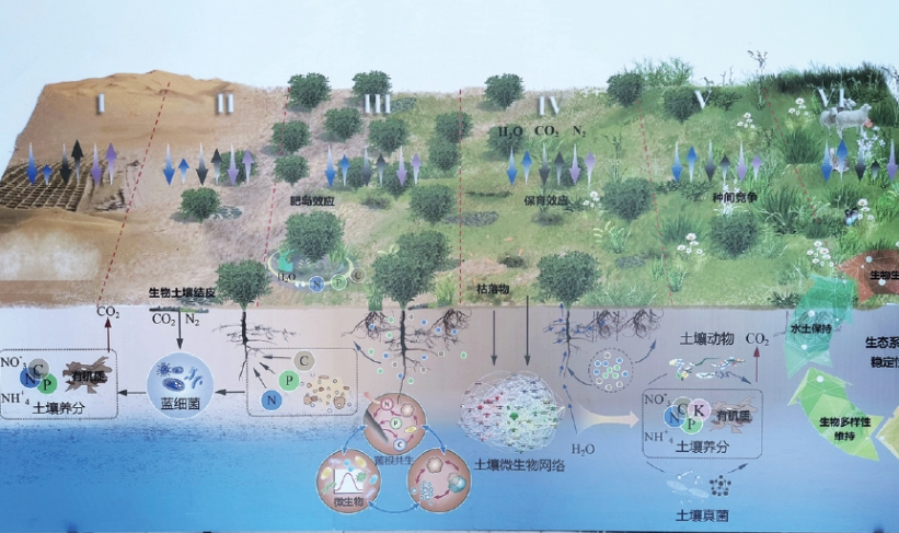 ▲北京林業(yè)大學在鹽池縣實施的退化生態(tài)系統(tǒng)恢復的生物和非生物過程演示圖