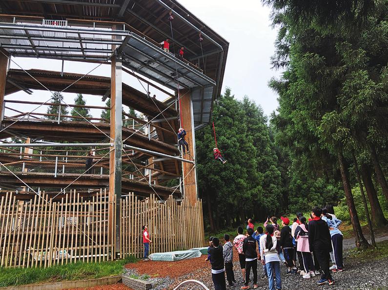據(jù)任場長介紹,2017年陜西延安黃龍的“樹頂漫步”營地建成投入使用后,仙女山林場就組織前往參觀學(xué)習(xí)優(yōu)秀經(jīng)驗?!皹漤斅健睜I地有效地把森林、旅游、運(yùn)動、教育和療愈結(jié)合起來,在德國、法國、奧地利、捷克等國家都有項目落地,亞洲地區(qū)當(dāng)時只有陜西黃龍。黃龍“樹頂漫步”營地負(fù)責(zé)人在重慶實地考察了多個區(qū)縣后,最終決定在武隆仙女山建設(shè)第二個“樹頂漫步”營地,現(xiàn)建成了有“樹頂漫步”互動體驗棧道、森林之眼、云端旋降、速降、自然之路等特色森林體驗項目與自然教育教學(xué)點,以及森林溜索、鷹巢秋千、森林攀爬、愛傳遞、晃動的橋等40余組無動力設(shè)施。同時,營地還開設(shè)有青少年生命安全教育、森林徒步等自然教育課程。作為亞洲地區(qū)“唯二”的“樹頂漫步”營地,對比黃龍的區(qū)位選擇,項目負(fù)責(zé)人說道,“與黃龍相比,重慶仙女山有先天的自然稟賦。第一是空氣濕度,雖然兩處的海拔相近,但是陜北的空氣濕度、植被種類與這里差異很大,仙女山有它的稀缺性。第二是險峻的山體、溝壑讓人容易內(nèi)心緊張,而仙女山的喀斯特地貌、平坦區(qū)域較多,給人很安心、安全、放松的感覺。我們的員工表示,在仙女山待久了,身體都好了,心情也變好了?!?/p>