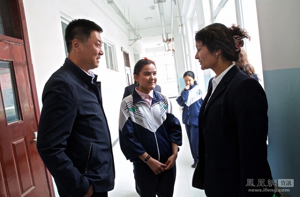 2016年洛浦縣援疆工作有55個(gè)新開(kāi)工項(xiàng)目,6個(gè)續(xù)建項(xiàng)目,援疆資金總額將近4億元,基礎(chǔ)設(shè)施建設(shè)、扶貧攻堅(jiān)、衛(wèi)生、教育、就業(yè)培訓(xùn)是重點(diǎn)。這所學(xué)校北京投資援建兩億多元。圖為4月7日,姜亦生在洛浦縣職業(yè)技術(shù)學(xué)校校長(zhǎng)的帶領(lǐng)下參觀校園。