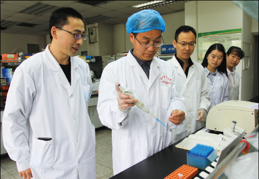 張涌研究團(tuán)隊(duì)在實(shí)驗(yàn)室(攝影/徐敏)