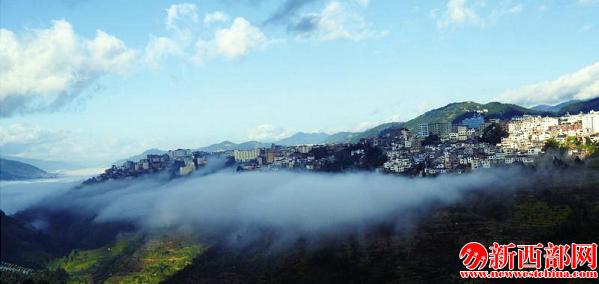 上午,來參加長街宴活動的各鄉(xiāng)鎮(zhèn)文藝方隊身著節(jié)日盛裝,帶著各種演出道具,共同簇擁著以大寨村大咪谷為首的縣城周邊13個村寨的祭祀咪谷,一路吹吹打打,載歌載舞;大咪谷全程端坐在牛車上,在一對金童玉女的陪伴下,整個隊伍緩緩走向3公里開外的東仰風情園廣場。